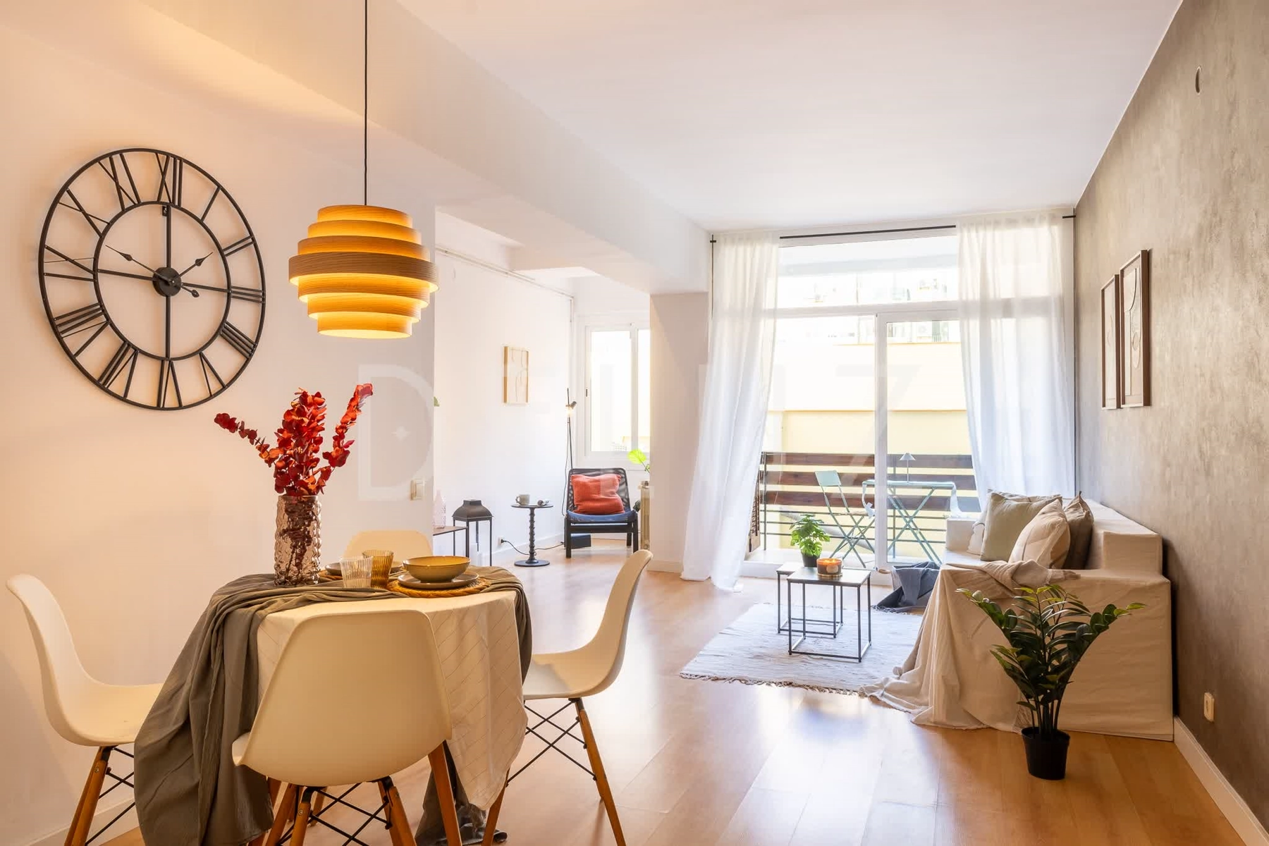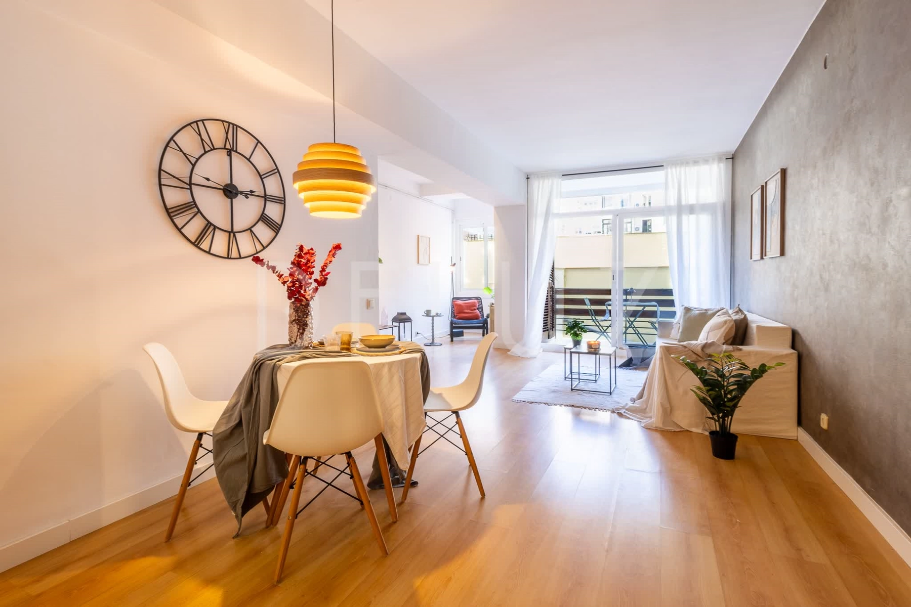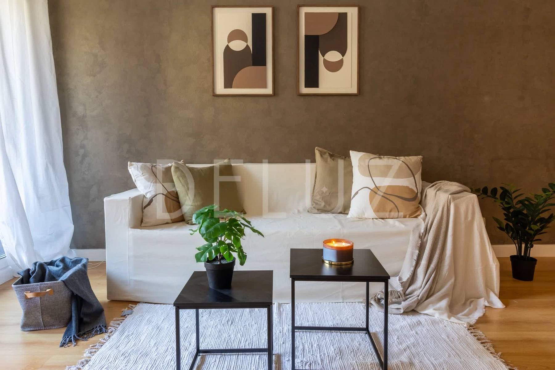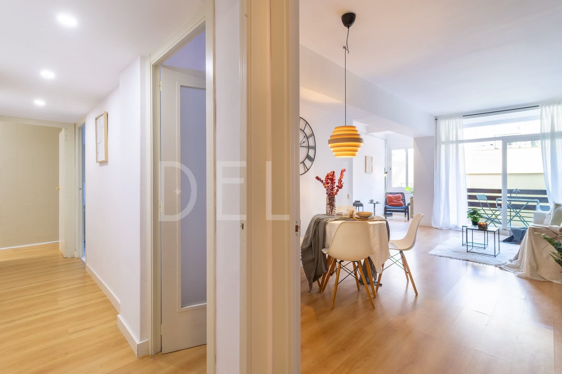 Este piso de tres habitaciones con una gran terraza en el Eixample necesitaba luz, calidez y una nueva historia que contar. A través del home staging trabajamos la iluminación y el estilismo para transformar un espacio apagado en un hogar lleno de vida.