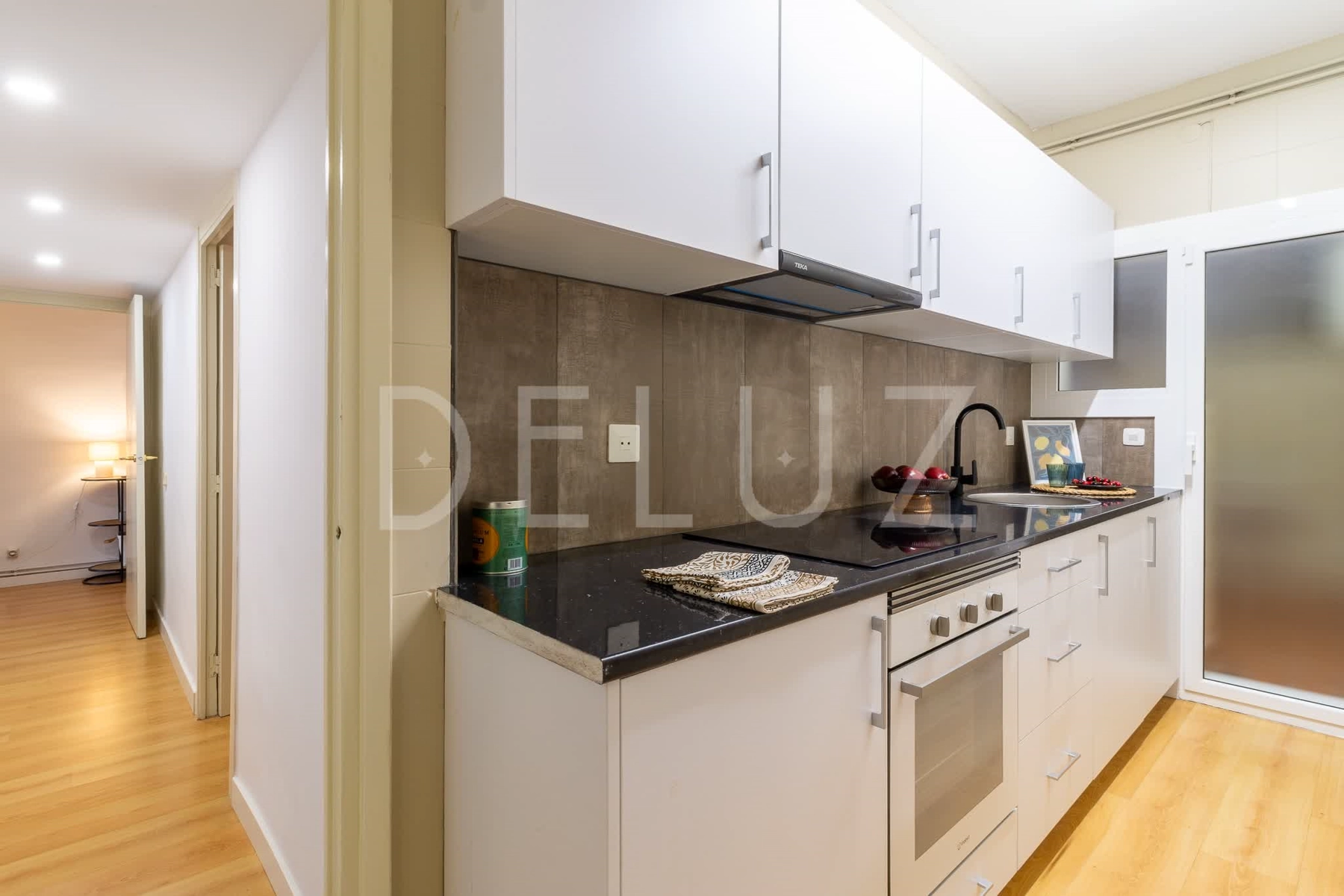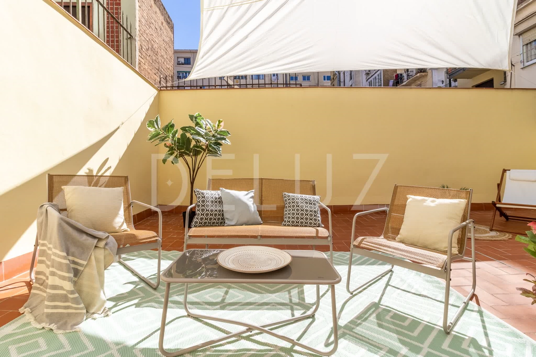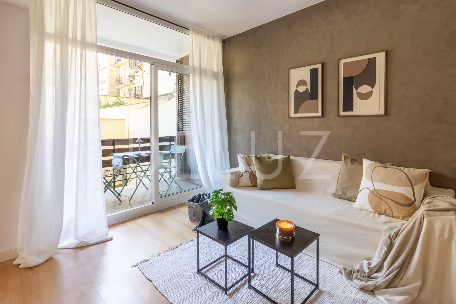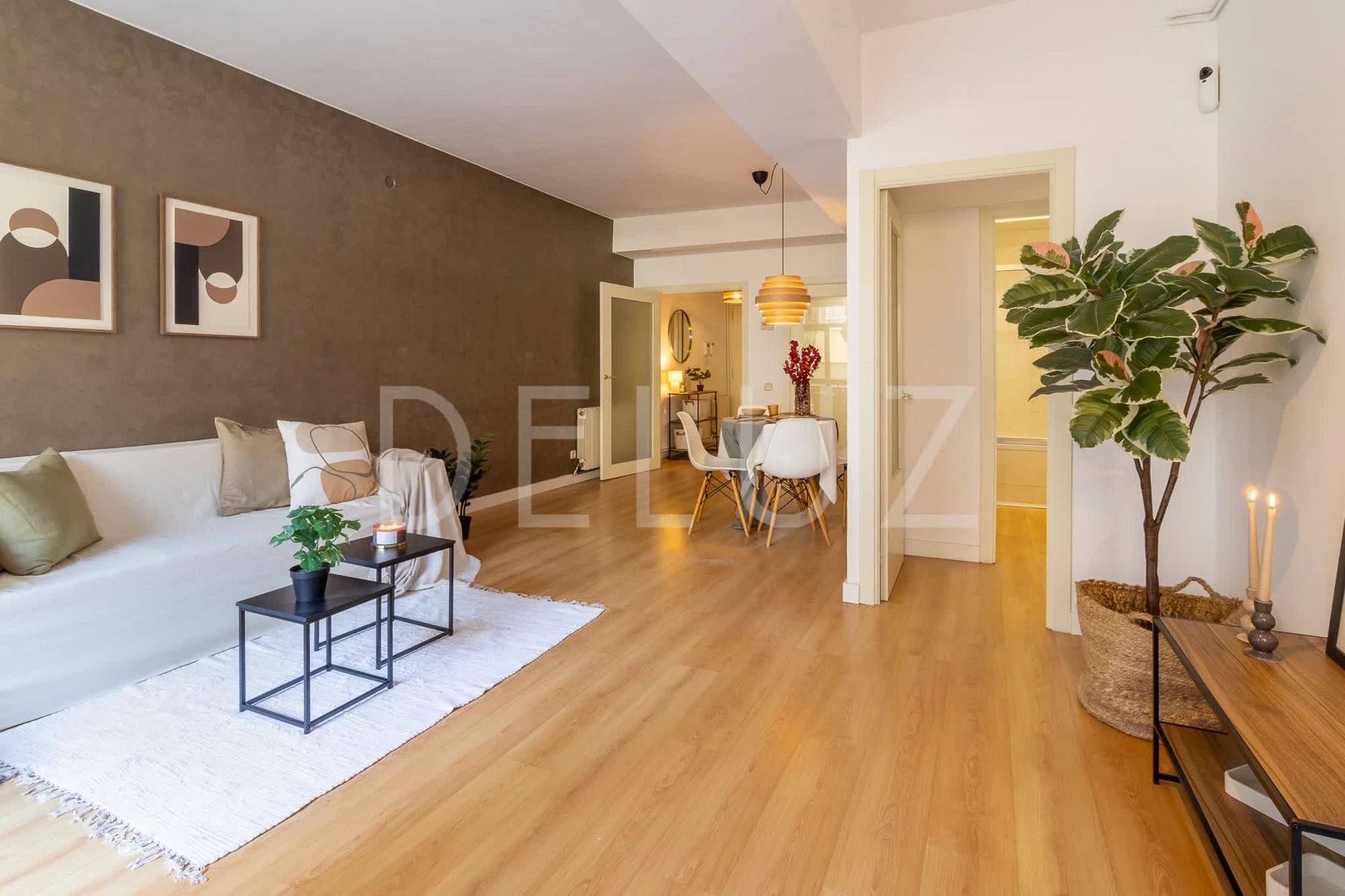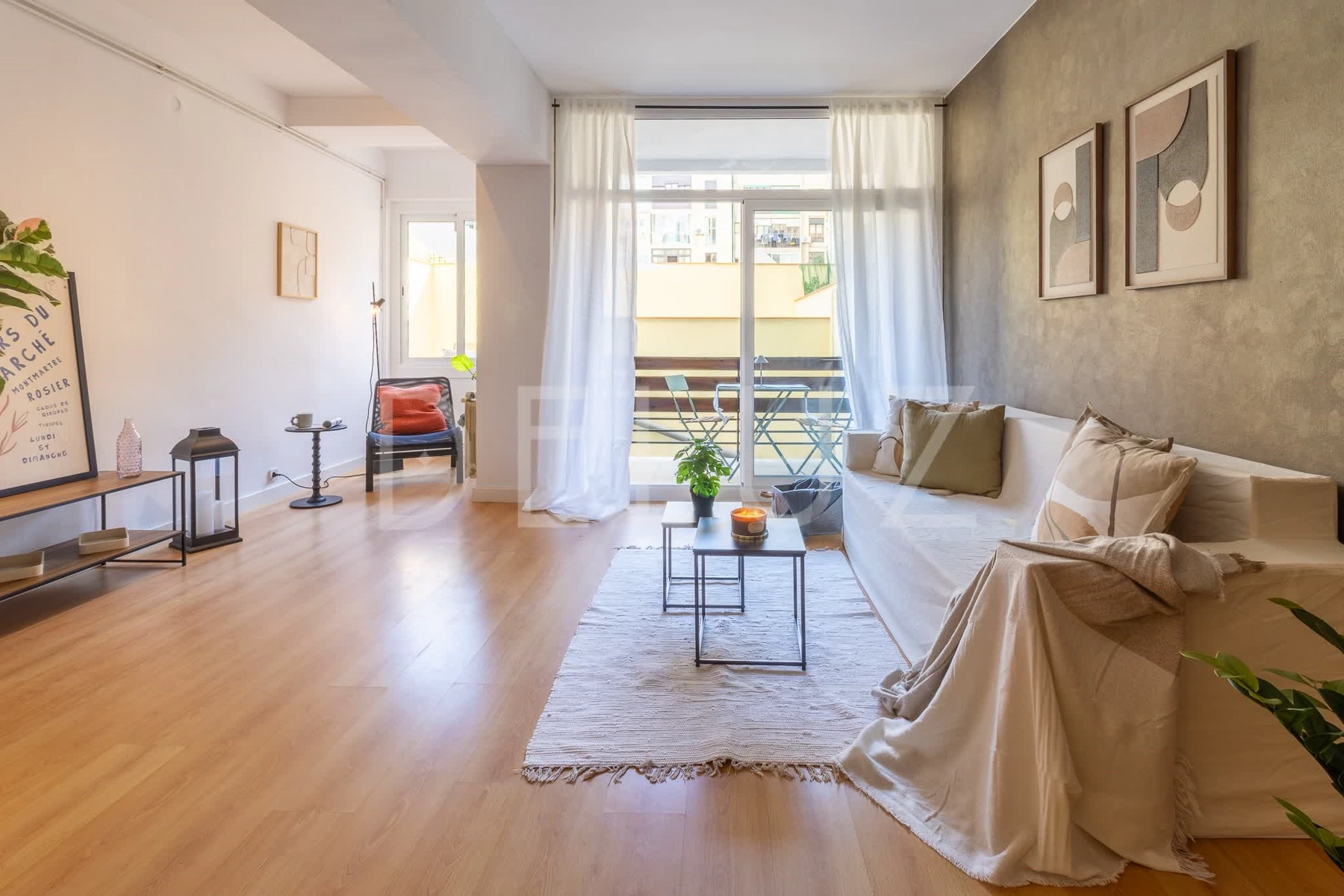 Este piso de tres habitaciones con una gran terraza en el Eixample necesitaba luz, calidez y una nueva historia que contar. A través del home staging trabajamos la iluminación y el estilismo para transformar un espacio apagado en un hogar lleno de vida.